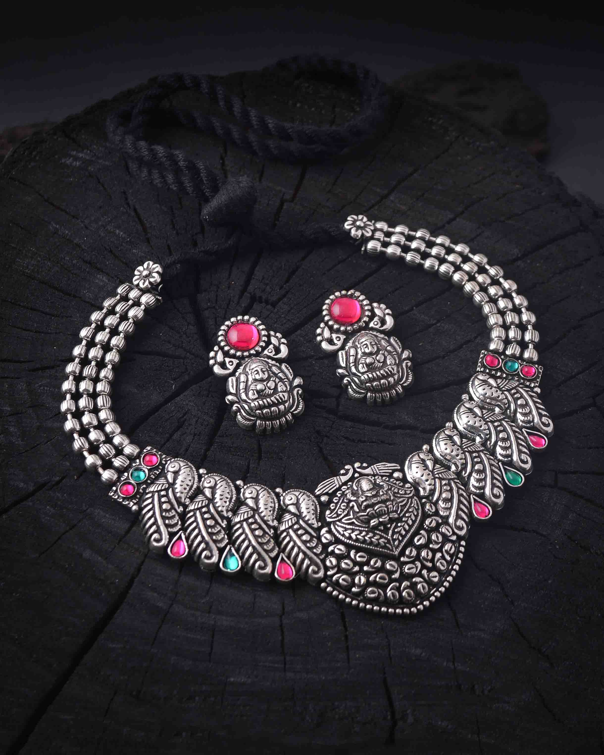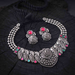 Our Oxidised Necklace combines traditional craftsmanship with contemporary flair, creating a statement piece that exudes timeless elegance. Made from high-quality metal and finished with an oxidised treatment, the necklace features a rich, darkened hue that adds depth and character. The intricate designs, often inspired by nature, heritage, or geometric patterns, make this necklace a perfect addition to any outfit—whether you're dressing up for a special occasion or adding a touch of sophistication to your everyday look. With its unique antique finish, this oxidised necklace is an essential accessory for those who appreciate vintage charm with modern appeal.