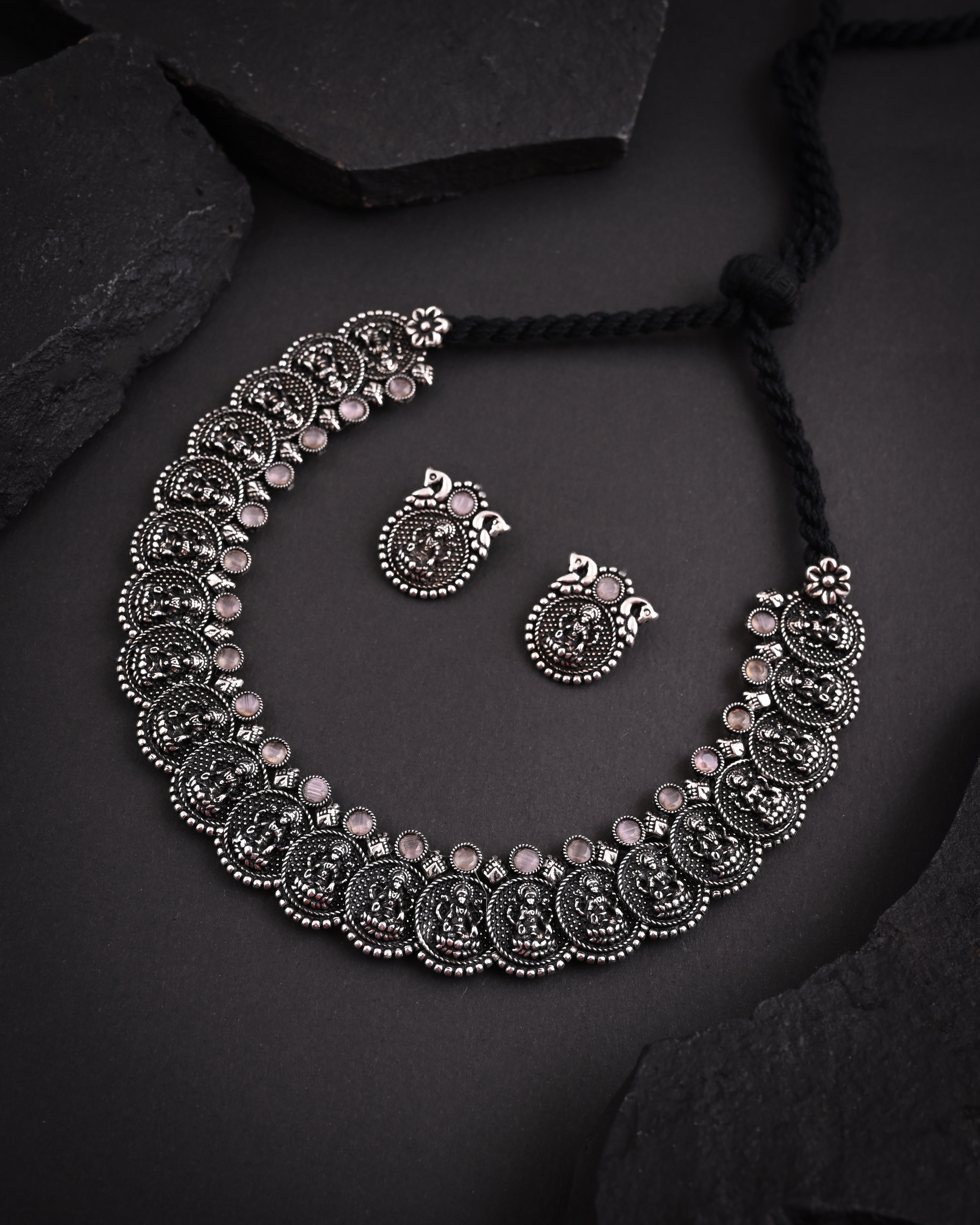 Our Oxidised Necklace combines traditional craftsmanship with contemporary flair, creating a statement piece that exudes timeless elegance. Made from high-quality metal and finished with an oxidised treatment, the necklace features a rich, darkened hue that adds depth and character. The intricate designs, often inspired by nature, heritage, or geometric patterns, make this necklace a perfect addition to any outfit—whether you're dressing up for a special occasion or adding a touch of sophistication to your everyday look. With its unique antique finish, this oxidised necklace is an essential accessory for those who appreciate vintage charm with modern appeal.