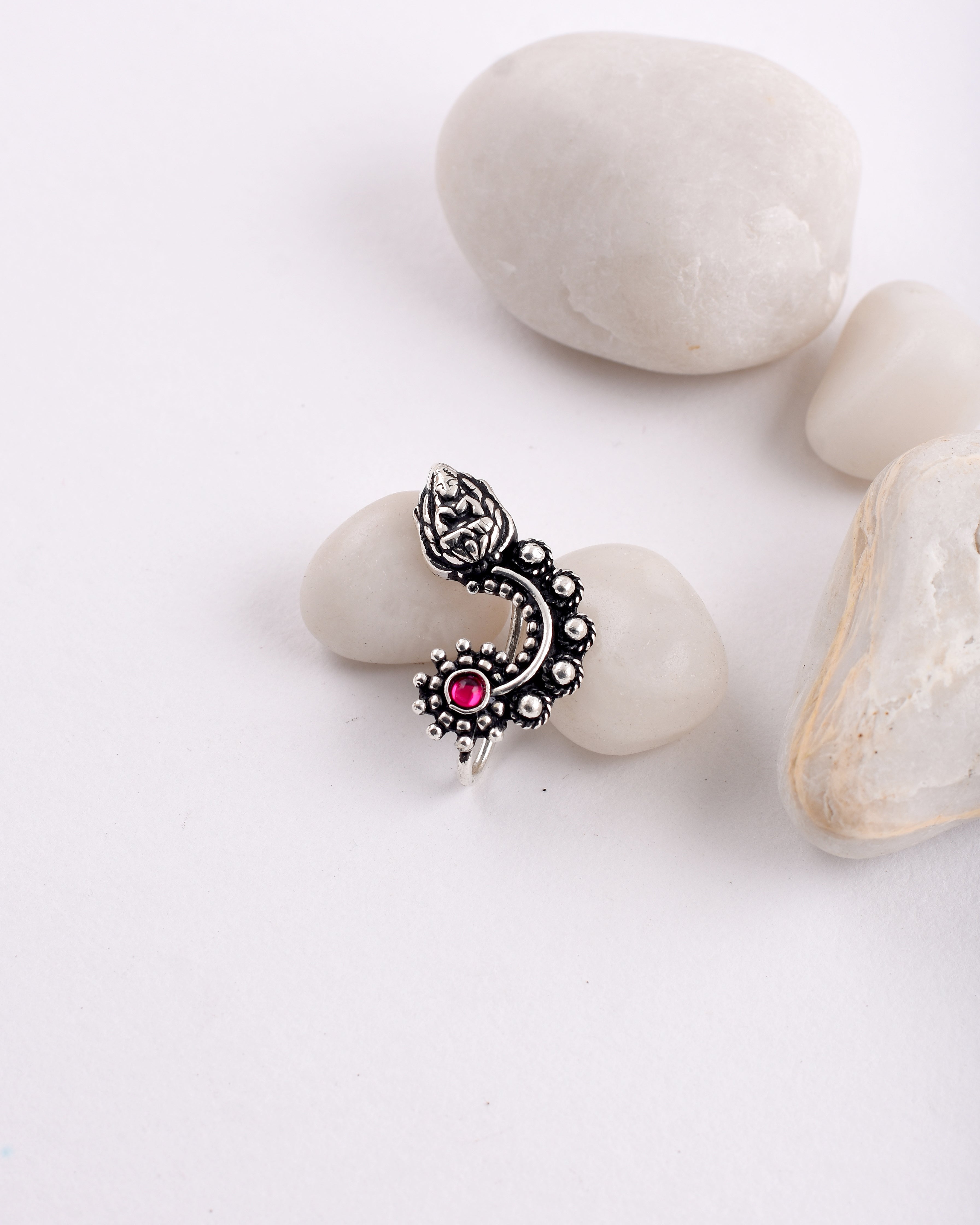 Our Oxidized Nath is a beautiful blend of timeless tradition and contemporary style. Crafted from high-quality metals like silver or brass, this nose ring features an exquisite darkened finish that enhances its antique allure. The oxidation process gives the nath a rich, rustic appeal, making it the perfect accessory for those seeking a unique, vintage-inspired look.